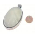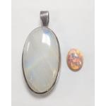 A silver mounted white stone pendant. Pendant is 7 x 3cm approx, gross weight 34g approx, also includes a small shaped opal