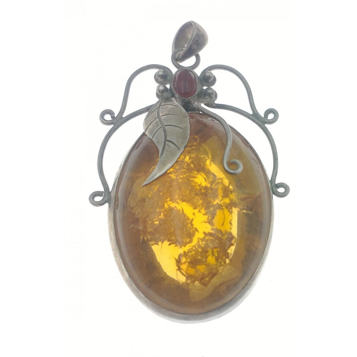 A silver mounted amber style pendant. 5cm x3.5cm approx, gross weight 13g approx.