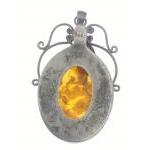 A silver mounted amber style pendant. 5cm x3.5cm approx, gross weight 13g approx.