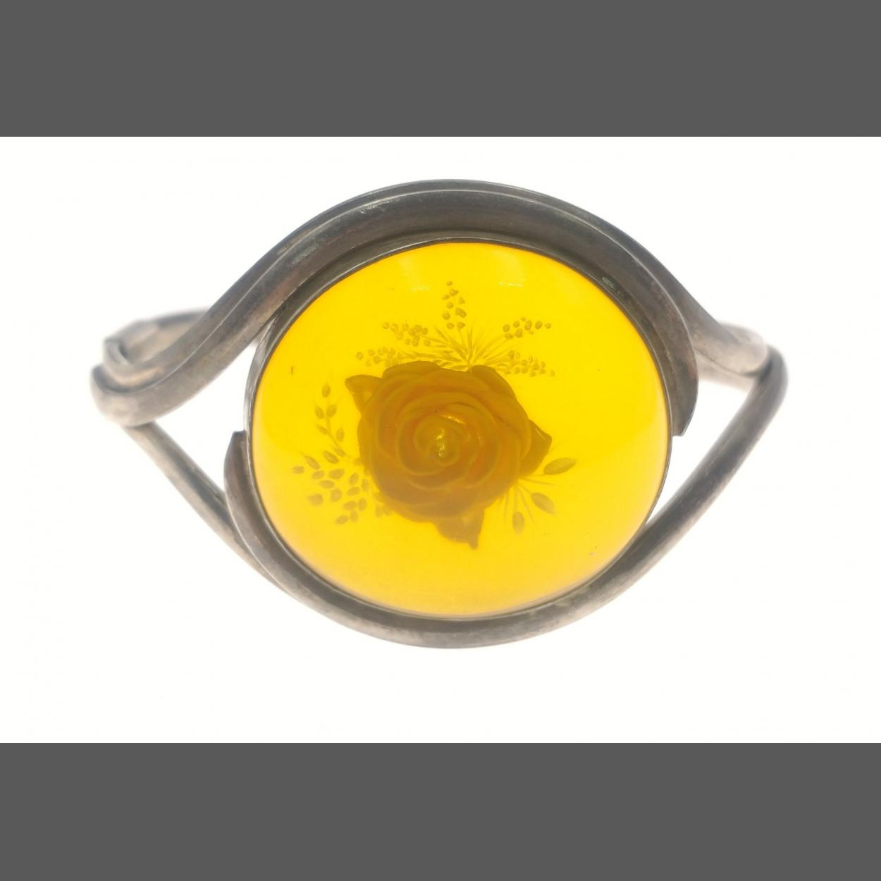 A silver mounted Amber style bangle. A circular design, gross weight 28g approx