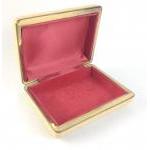 A clamshell jewellery or vintage watch box with red satin interior lid and attractive gilt edging. 14cm x 12cm approx. and in good condition.