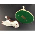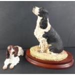 Two BORDER FINE ARTS dog models. The larger an older (1993) Made in Scotland MT03A English Springer Spaniel by Margaret Turner standing approx 9cm without plinth. The smaller a lying down English Springer Spaniel (A3041) from 2003.