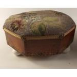 A pair of matching small beaded footstools with ceramic bun feet. Some minor loss to applied inlay and to the beads as expected. A pretty little pair.