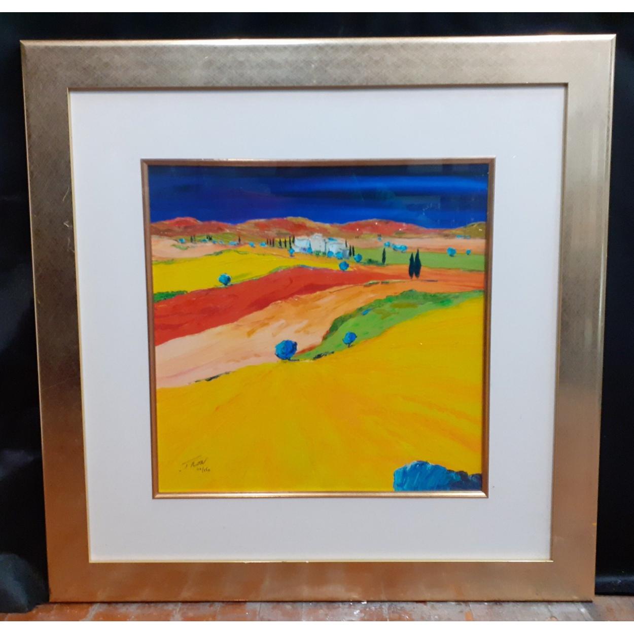A beautiful warm limited edition (110/250) signed print by JEAN CLAUDE TRON (born 1943) in a lovely gilt frame. Frame size 77cm squared approx. Actual painting 45cm squared approx. The artist is renowned for his love of and paintings of the South of France. A lovely work to grace any wall.
