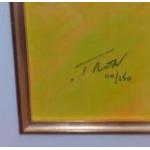 A beautiful warm limited edition (110/250) signed print by JEAN CLAUDE TRON (born 1943) in a lovely gilt frame. Frame size 77cm squared approx. Actual painting 45cm squared approx. The artist is renowned for his love of and paintings of the South of France. A lovely work to grace any wall.