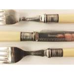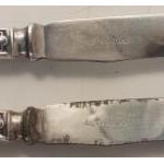 A small box with VINTAGE 6 place setting fish knives and forks, with 10 nice quality tea spoons and 12 small butter knives by W&H (Walker and Hall) plus 2 odd ones, one of which is silver handled