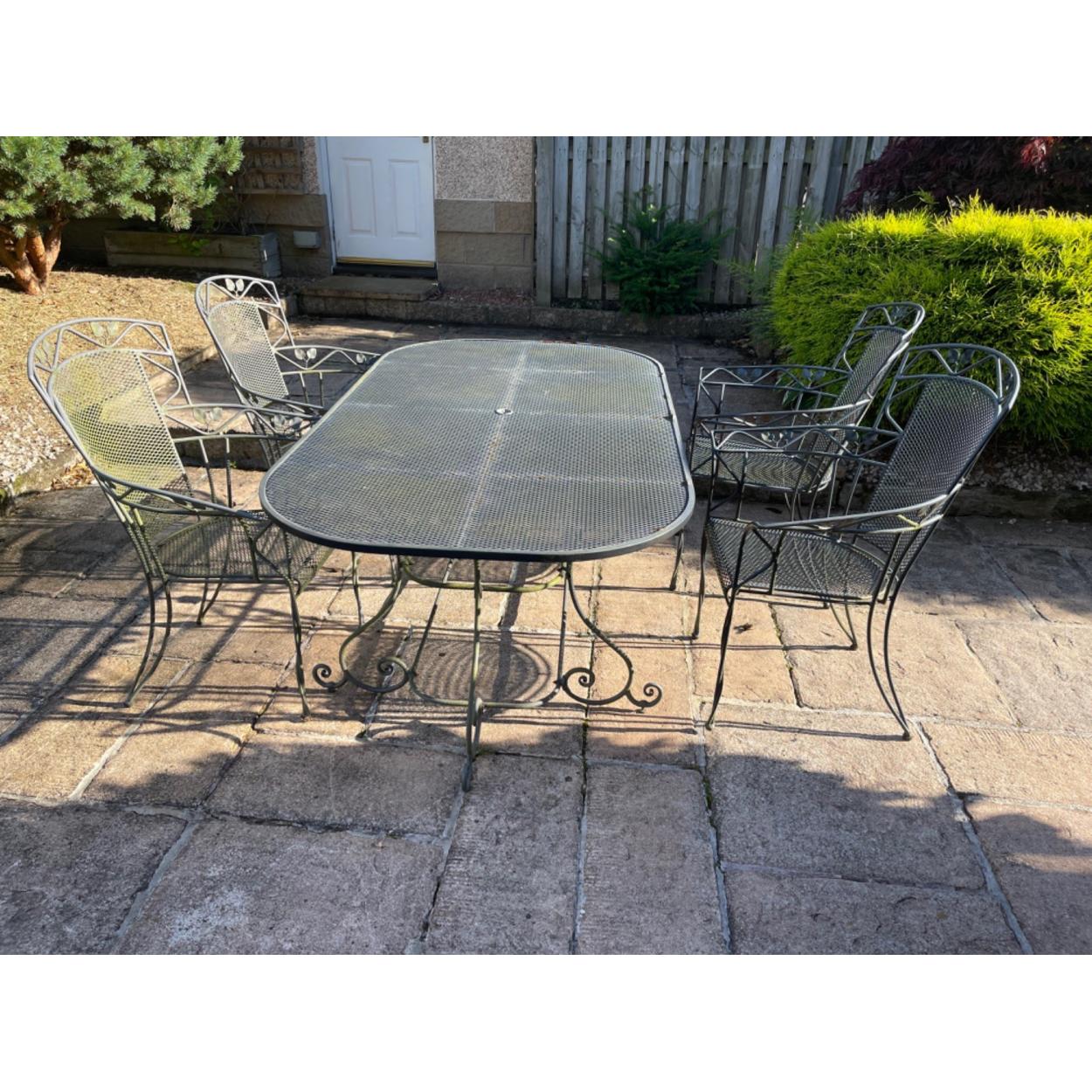 The table has a couple of rusted parts on the edge-part of the table but these do not detract from the 'look' of this table set - probably cost in the region of £2500 new!