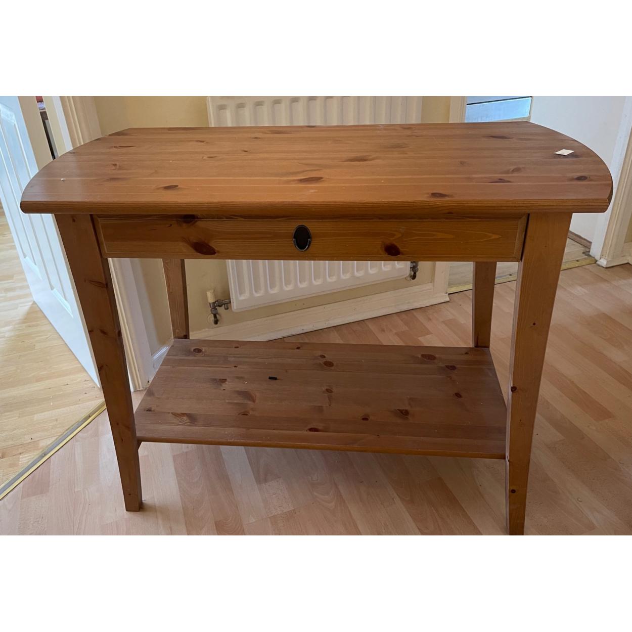 A hall or lounge pine CONSOLE pine table with lower shelf - and drawer for storing all these useful knick-knacks! dimensions 3ft width x 18" depth x 2.5ft height approx - IDEAL UPCYCLE PROJECT!