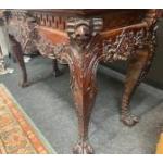 EXQUISITE VINTAGE! A BEAUTIFULLY HANDCARVED mahogany hall or console table with eagle head and curved leg 'feathered' supports and a central hand-carved large flora design (on both sides!) - dimensions 120cm long x 54cm depth x 86cm height approx