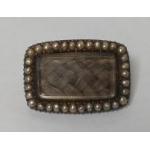 A small yellow metal mourning brooch with a seed pearl surround,1.5 x 2cm, gross weight 3.25g approx