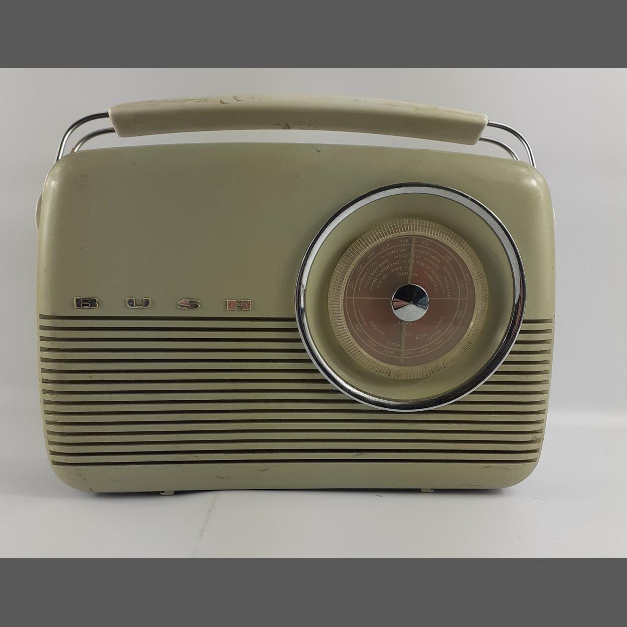 Vintage BUSH TR82C battery transistor radio in grey. Some minor damage to rear case at corners.