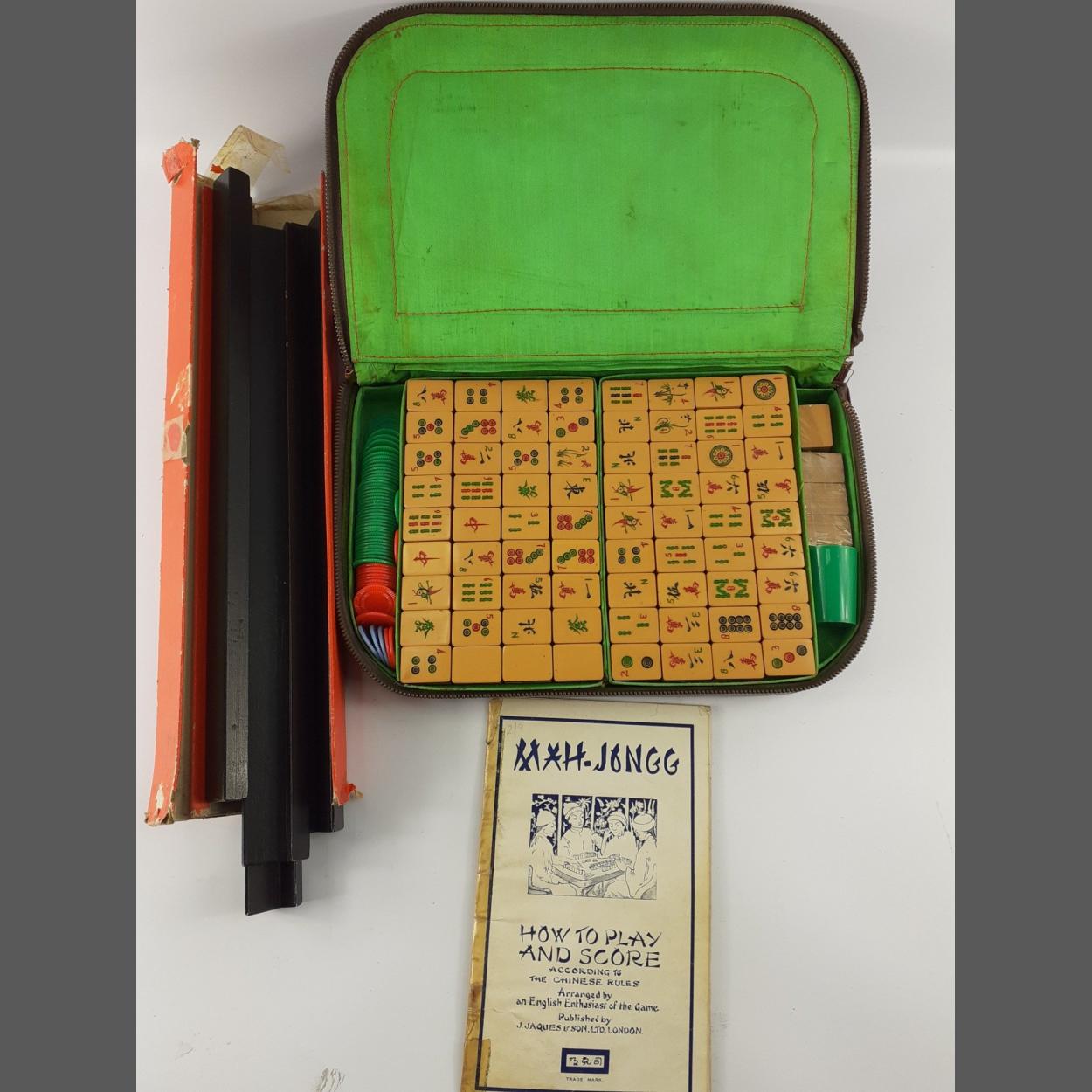 A complete MAHJONG set in travelling case with instruction booklet and also four racks