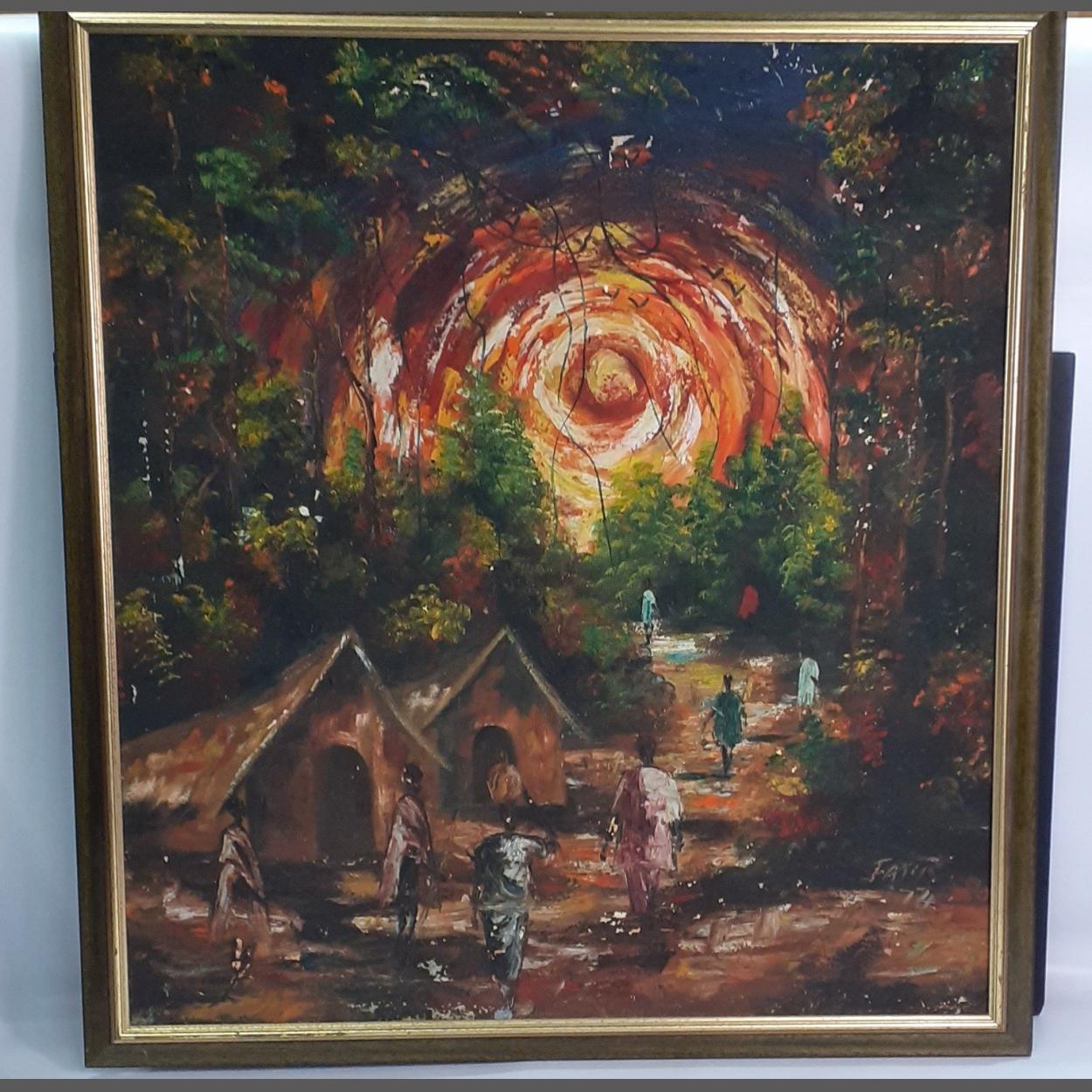 A large framed mixed media painting of somewhere hot! Indistinct signature to bottom right, dated 1974. Frame size 90 x 80cm approx