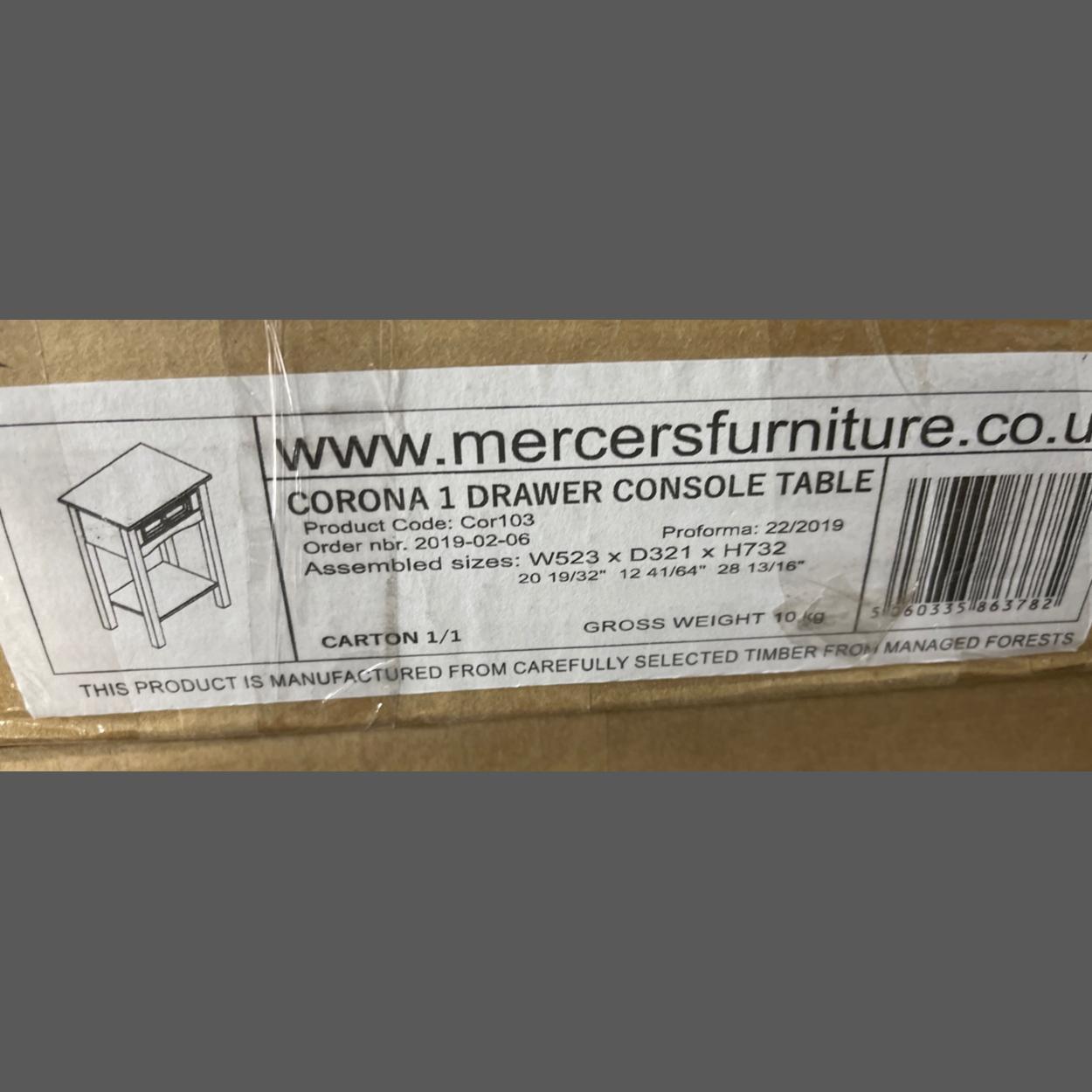 One of a pair of CORONA 1 drawer console tables (model Cor103). Assembled size W523xD321xH723mm. This item is boxed and unassembled therefore photo is stock