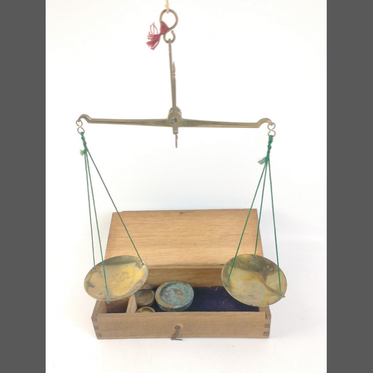 A small set of balance scales with some weights