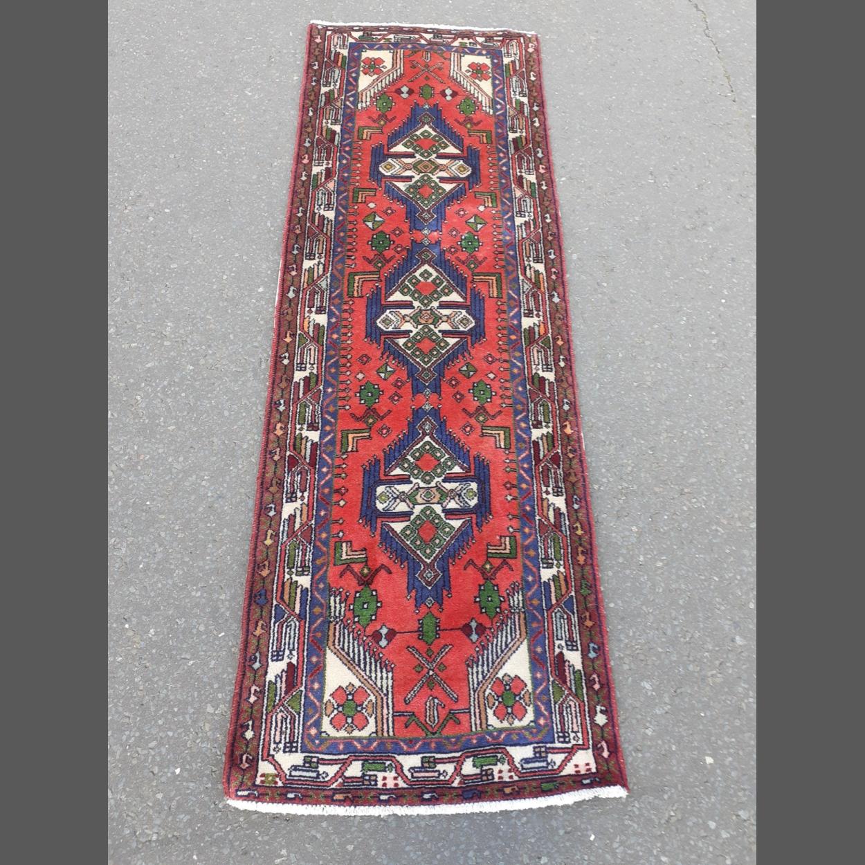 A hand made Persian woollen runner carpet. measures 82cm wide and 250cm long.