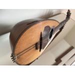 An ANTIQUE BOWLBACK MANDOLIN with Mother of Pearl Inlay - 60cm long x 20cm width approx - by DUNN & DAVIDSON music sellers Edinburgh & Leven - 4 strings missing - no cracks or splits to note on the bowlback
