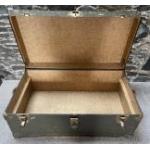 VINTAGE! A hard-shell travelling-trunk finished in green - with metal bindings - 80cm length x 43cm depth x 33cm height approx - LOVELY PATINA!