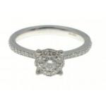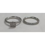 THE WEDDING SET! - a 750 stamped white gold DIAMOND ring, with a centre diamond 3mm diameter approx surrounded by 8 smaller diamonds(tested), ring size L/M gross weight 3.80g approx , with also a diamond(tested) studded(approx 25 small diamonds approx) wedding band ring size J/K gross weight 2.50g approx - and includes it's jeweller presentation ring box - customer spent £2.5k when new