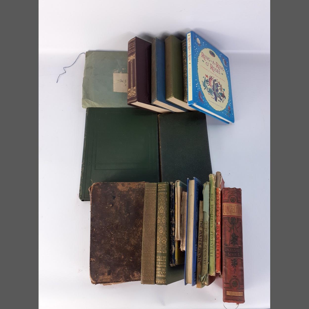 A fun book of books to include GINGER'S ADVENTURES, BOB BUSHTAIL'S ADVENTURE JEREMY'S DAY IN THE COUNTRY various other children's books and others. Lot includes a quantity of Davis Utility cards from the 1920s for stitching. interesting box of nostalgia.
