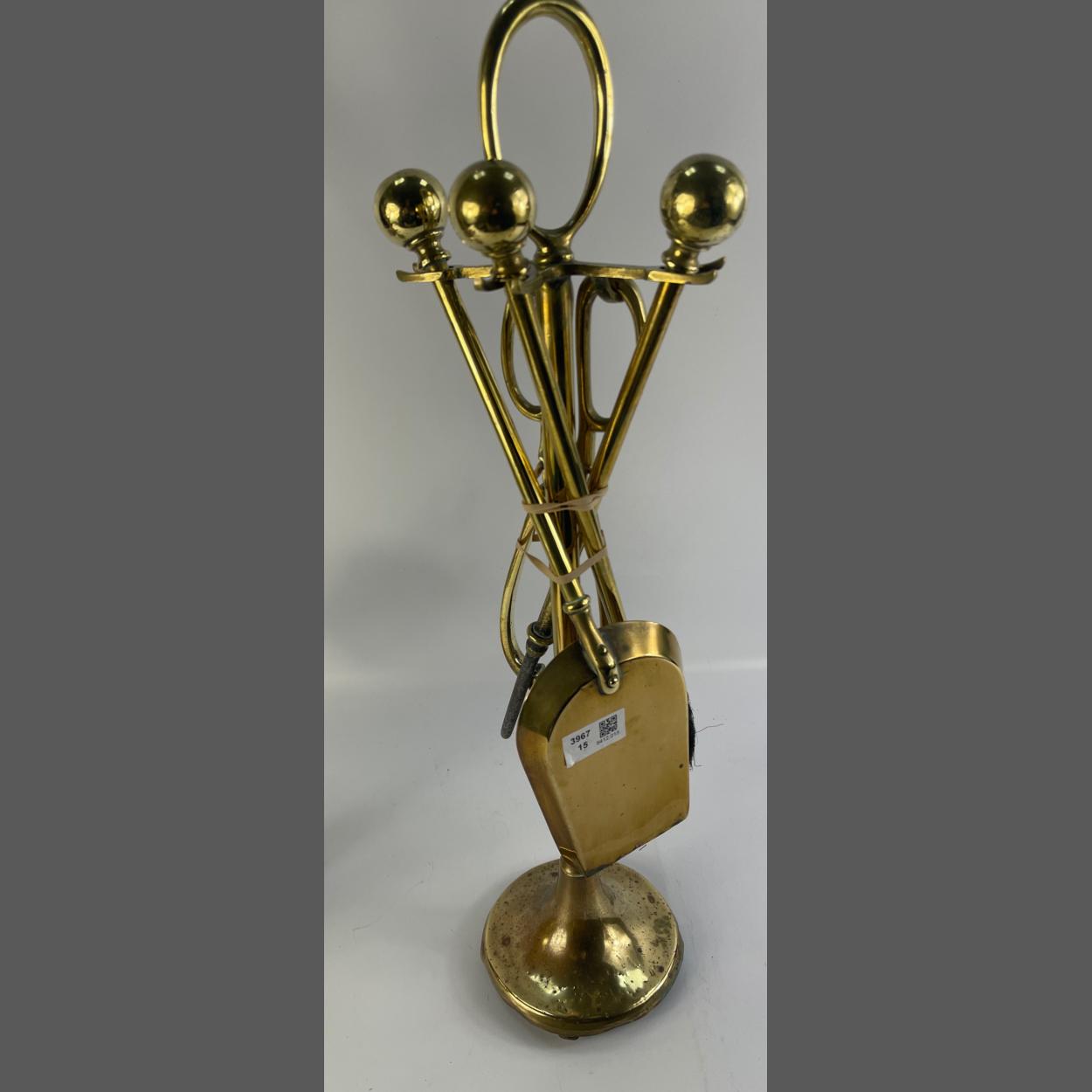 VINTAGE - A four piece brass companion set standing approx 54cm