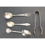 A small collection of silver hallmarked cutlery to include a sugar spoon with thistle finial, Edinburgh 1958, sugar snips, London 1905, a spoon Sheffield 1961, and a spoon with golfer on finial, Birmingham 1968, gross weight 61g approx