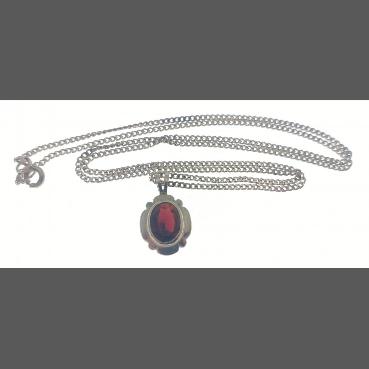 A 375 stamped yellow gold chain and pendant with a nice sized centred garnet stone - gross weight 4.57g approx