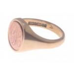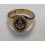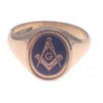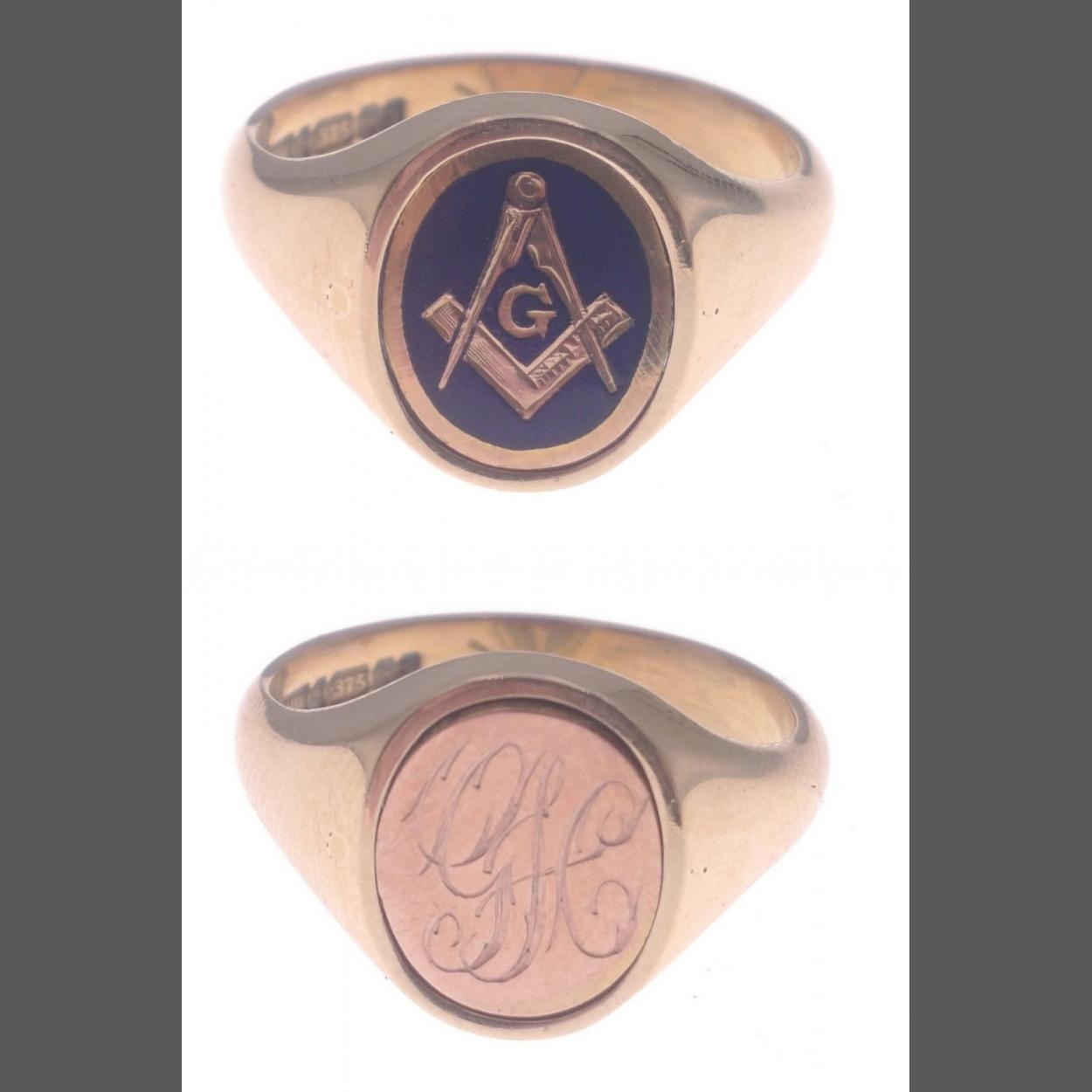 A 375 Birmingham Hallmarked 'SWIVEL' top MASONIC symbol ring - size V, gross weight 8.05g approx - this ring is in very good condition!