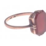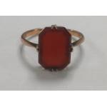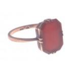 STUNNING! - A 9ct stamped yellow gold ring with a large cut red/orange stone - unusual! - size N/O, gross weight 2.05g approx - comes with its jeweller's presentation box