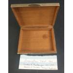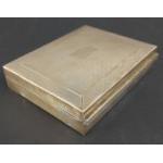 A VINTAGE SILVER cigarette case hallmarked Birmingham 1960 with cedar interior. Uninscribed cartouche, minor dents overall condition excellent. 11cm x 9cm approx. Total gross weight 239g approx