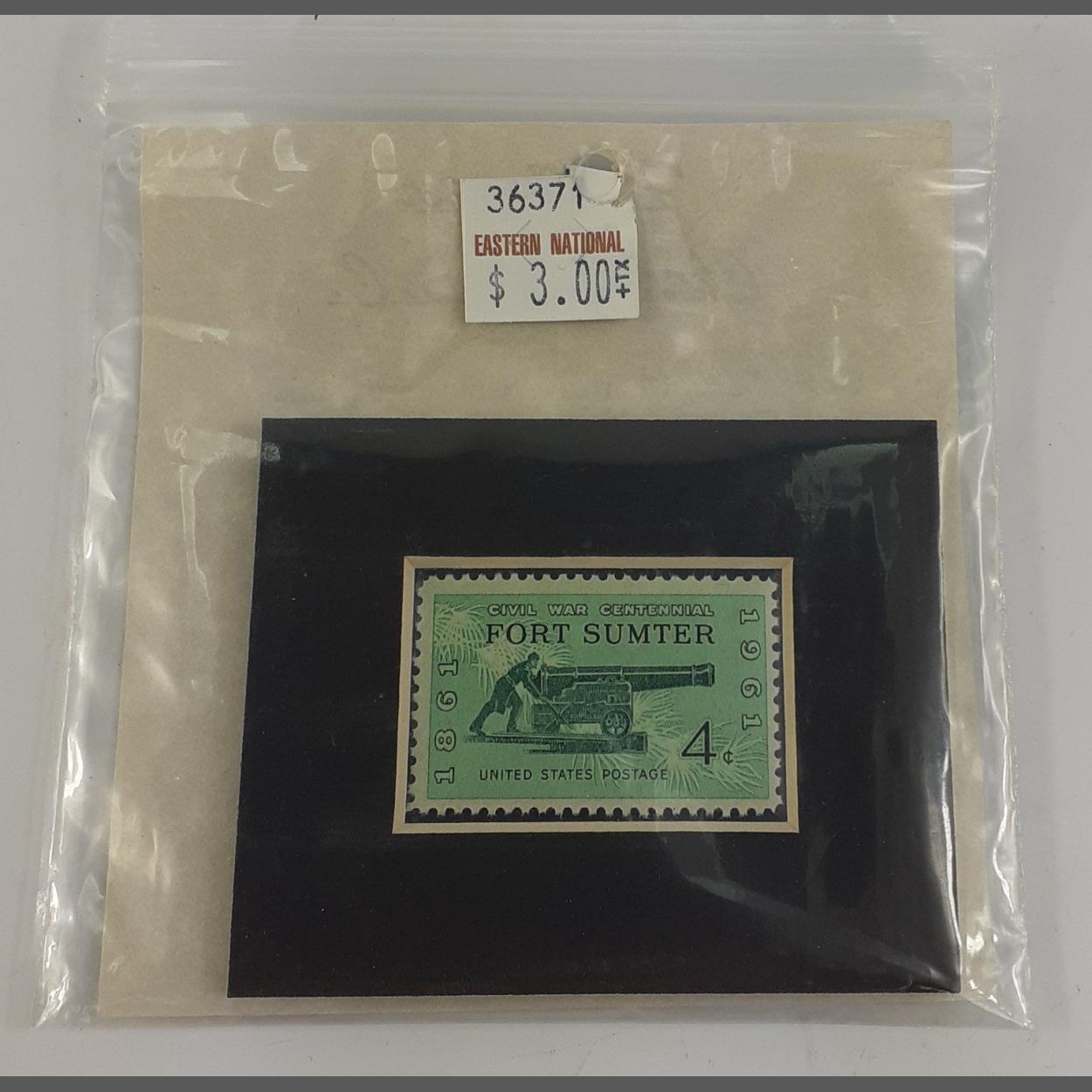 A mint non-hinge FORT SUMTER United States Postage Stamp MNH in holder as issued with souvenir note.