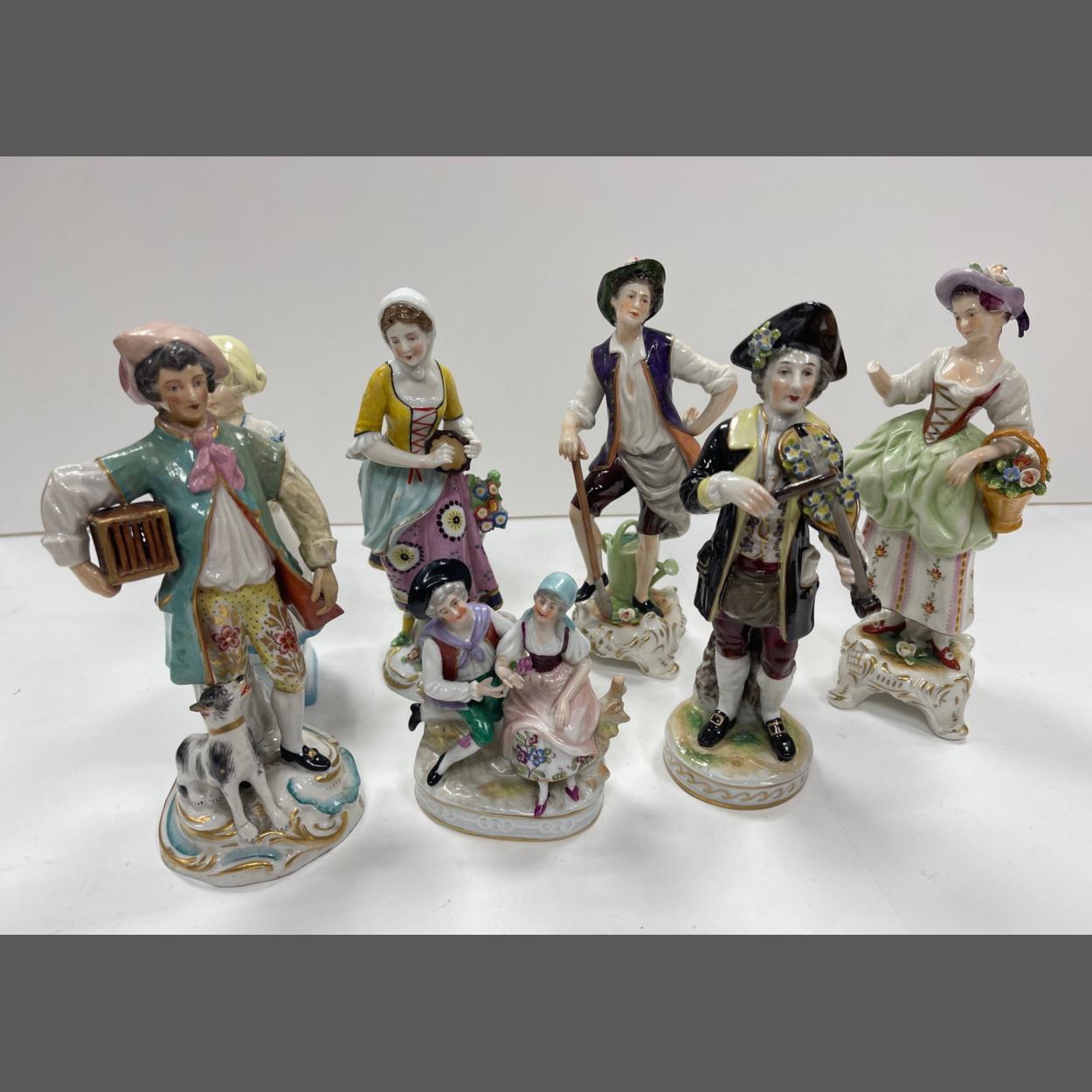 Six vintage ceramic figurines, tallest approx 20cm high, two with some damage