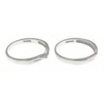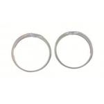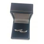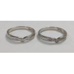 A box containing two rings. One with a wishbone style with diamond chips stamped 375 size P gross weight 2g approx. The other a similar but without chips size P, weight 2.9g approx.