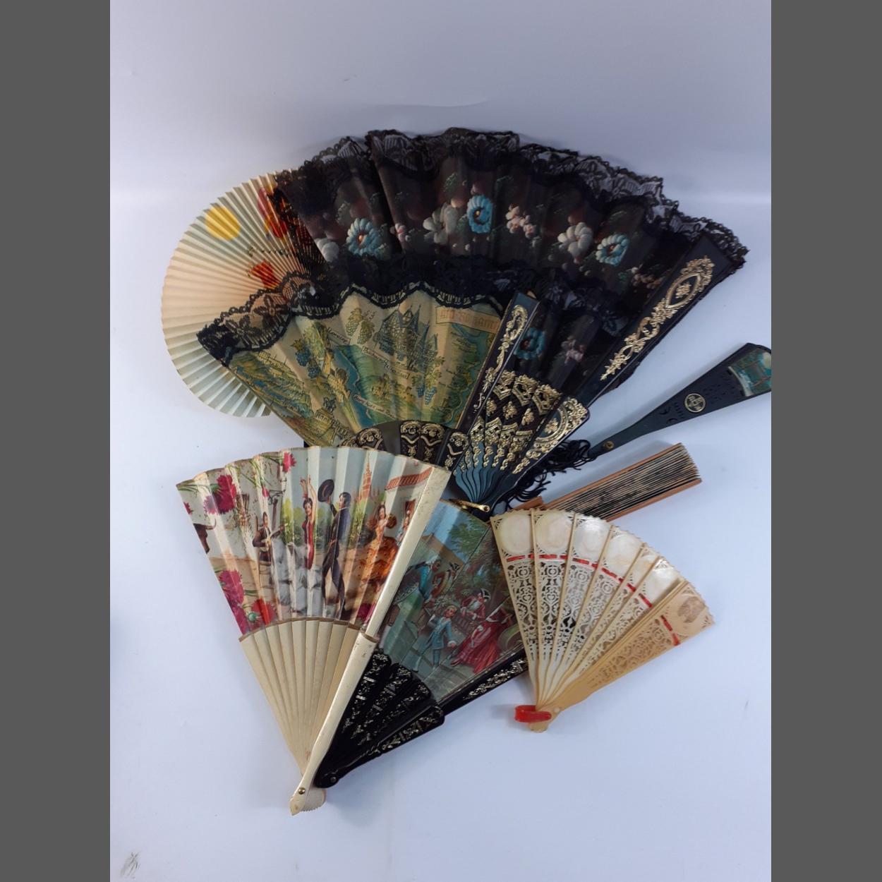 A lot of ten Oriental ornamental fans, appear to be tourist souvenir style fans.