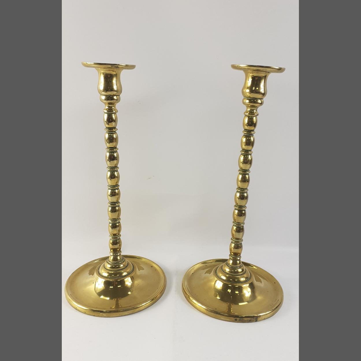An impressive pair of brass candlesticks standing 33cm tall. Both in very nice condition.