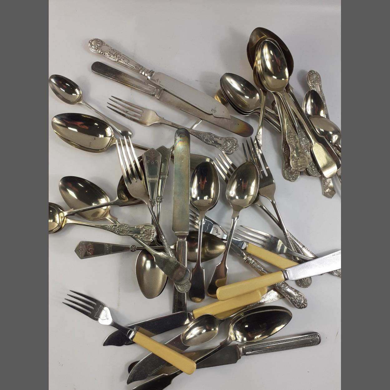 A tin of vintage EPNS silver plated flatware comprising spoons, knives and forks. A good useable lot.