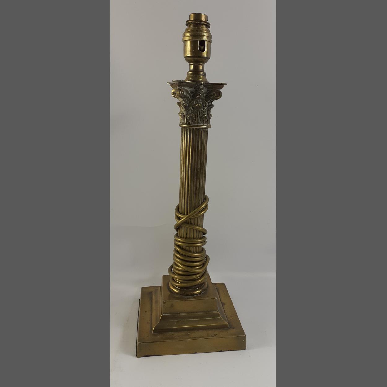 A nice solid brass Corinthian column lamp base standing 45cm tall and in nicely patinated condition.