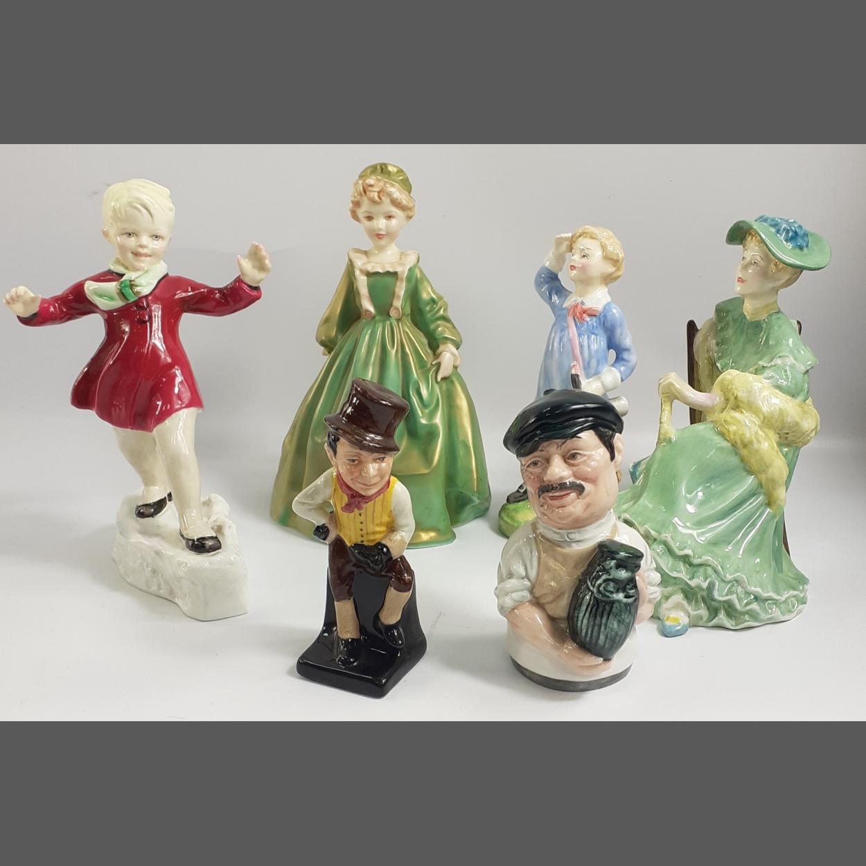 A ROYAL DOULTON lot including Sam Weller, Grandmother's Dress (3081), Ascot (HN2356), Little Boy Blue (HN2062), from the International Collectors Club Albert Sagger (D7191) and from ROYAL WORCESTER January (3452)