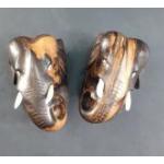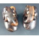 A matched pair of well-carved hardwood ASIAN ELEPHANT wall plaques with resin tusks. Each approx. 10cm tall. Nice items and in lovely condition.