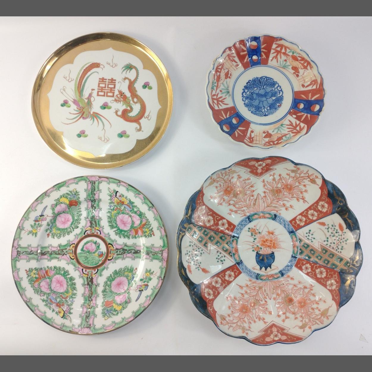 Four decorative Oriental plates to include an Imari style fluted dish (30cm dia)