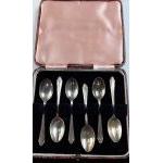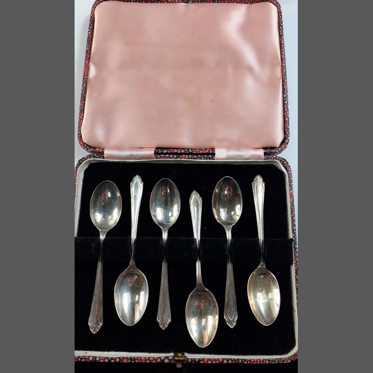 A lovely set of STERLING SILVER coffee spoons in pretty silk lined case. Fully hallmarked for Sheffield 1954 Francis Howard Ltd. weight 49g approx.