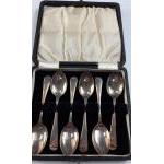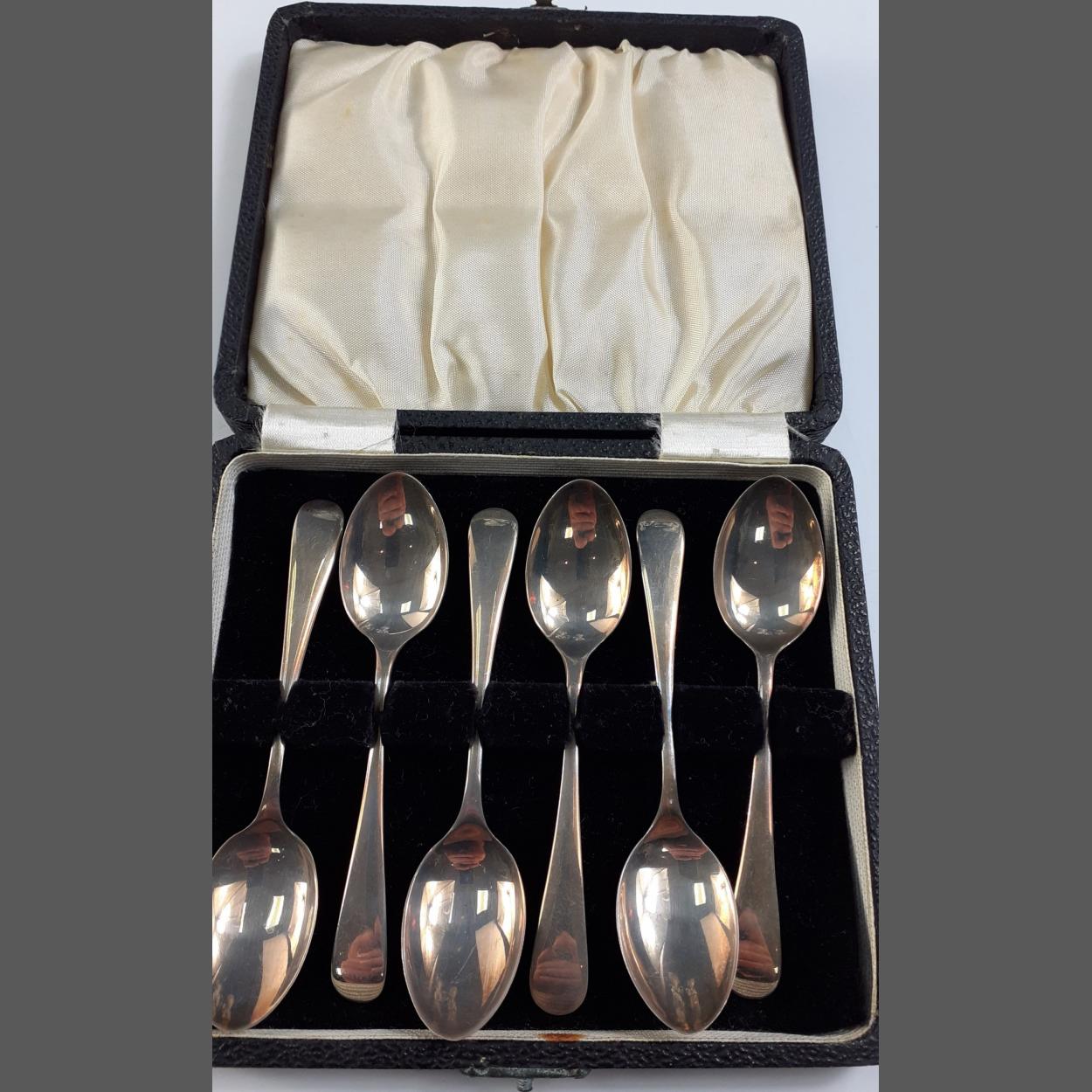 A lovely set of STERLING SILVER tea spoons in pretty silk lined case. Fully hallmarked for Sheffield 1946 by Viners, weight 72g approx