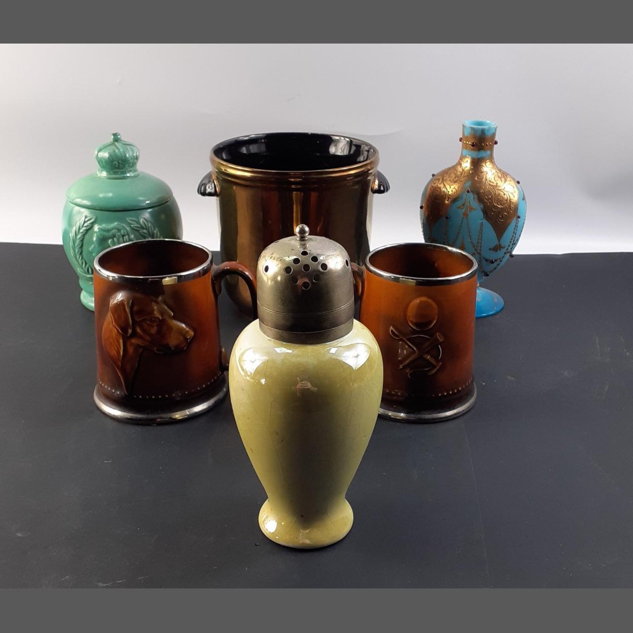 A lustrous lot of Lustreware to include a BESWICK copper lustre vase 1554-2, two SYLVAC mugs and others.