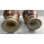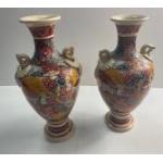 A pair of SATSUMA urn jugs nicely decorated with traditional Oriental gentlemen standing approx 25cm high with no damage.