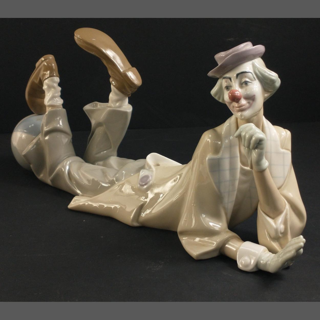 A large LLADRO reclining CLOWN with ball. A really nice collectable model in excellent condition. 36cm long.