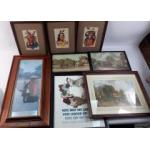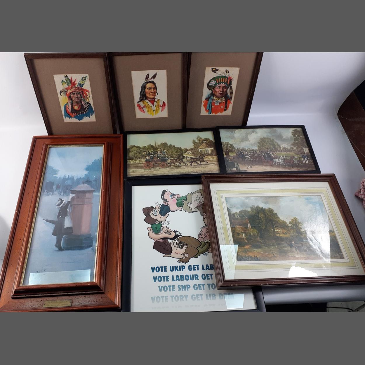 A small collection of prints to include 3 of Native Americans on silk 27x22cm