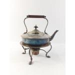 EDINBURGH MAKERS ANTIQUE - complete white metal spirit kettle on stand by BROOK & SON of Edinburgh stands 26cm high approx