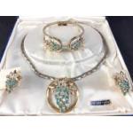 BLING! - LA REGINA by Gail Helene 5th Ave. 24K gold plated jewellery set in fitted case which has wear.