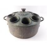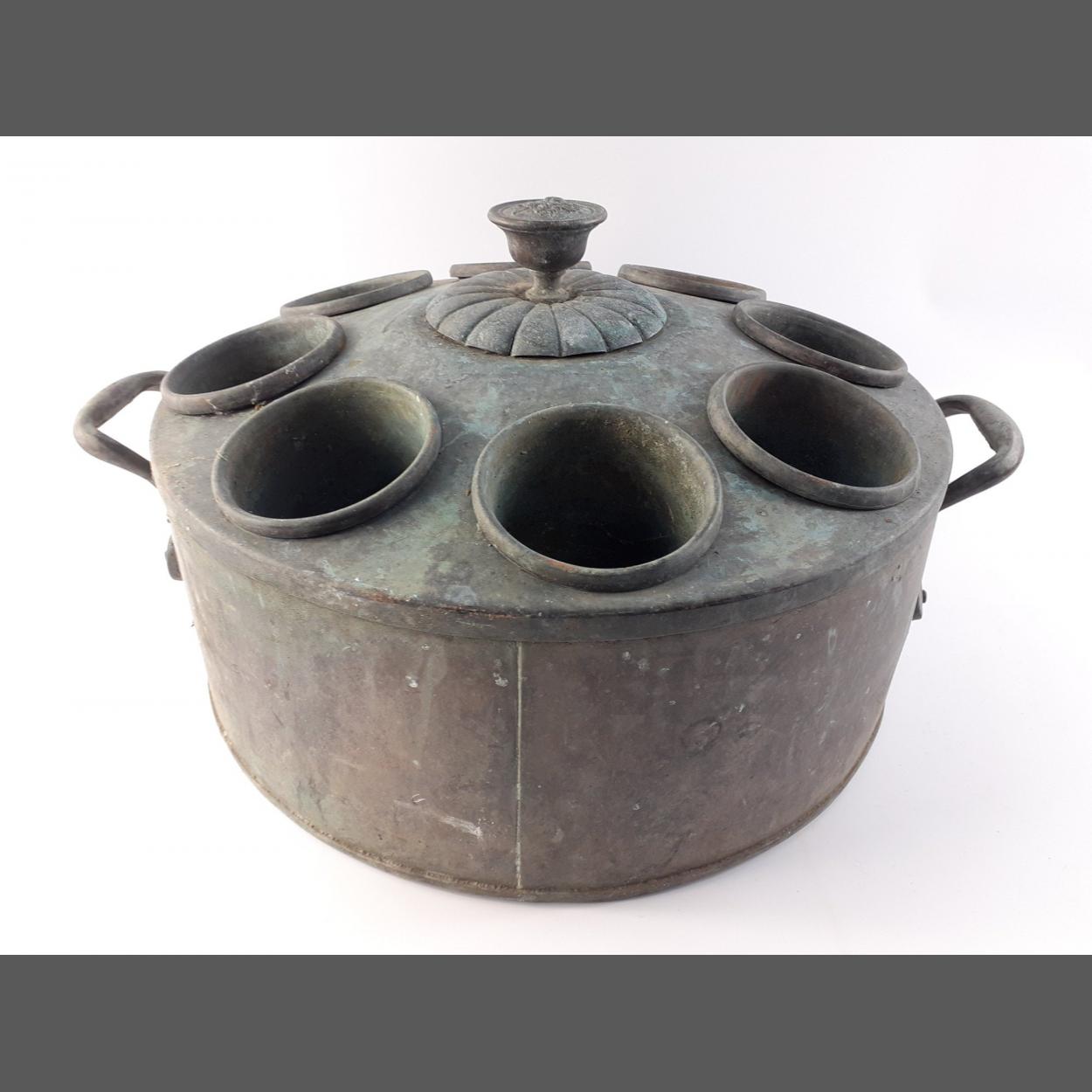 WHAT IS THIS? - A circular copper storage device of unknown function?. Has eight removable holders with a central handle. Would make a great garden planter. A super thing. Measures 35 cm across.