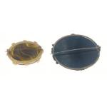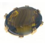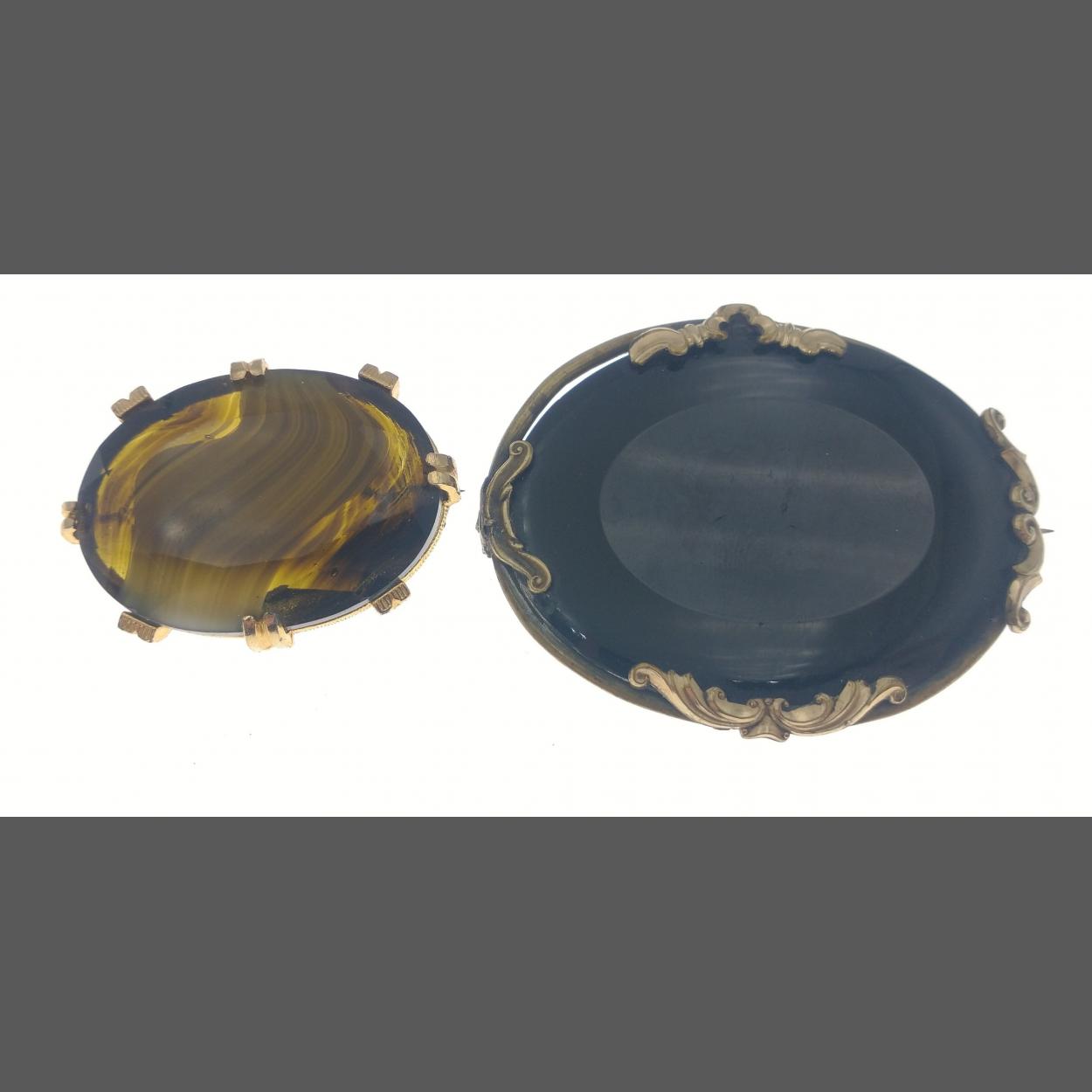 SUPER QUALITY VINTAGE PINCHBECK unmarked yellow metal and polished black JET large brooch - with one other modern agate dimensions 6.5cm x 5cm approx - weight 18.83g gross with also a NICE QUALITY modern agate brooch in yellow metal 4.5cm x 3cm approx